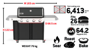 Experience powerhouse performance and precision with the upgraded Weber® Genesis® EP-435 Gas Barbecue. This premium 4-burner outdoor entertaining barbecue is perfect for large families or anyone looking for plenty of space, power and cooking versatility. Featuring a Sear Zone, side burner, grill locker, and Weber Crafted® griddle, it’s sure to be the centrepiece of your backyard. An ultra-hot Sear Zone, powered by two dual-row PureBlu™ burners, reaches ~400ºC for impressive restaurant-quality searing. The spacious cooking area heats up fast and evenly, thanks to the premium PureBlu™ burners. Heavy-duty porcelain-enamelled, cast-iron cooking grills flip over to fit Weber Crafted® cookware, giving you ultimate cooking versatility by transforming your barbecue with a griddle, pizza stone, veggie basket, and more . Plus, with Weber Works™ interchangeable accessories that drop in or snap onto the side tables, you can store, carry, prep, and serve seamlessly.