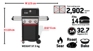 Perfectly sized for the Aussie and Kiwi lifestyle, the reinvented 3-burner Weber® Spirit® E-325 Gas Barbecue strikes the ideal balance between power, versatility, and space. Whether you’re barbecuing for the family or hosting a laid-back weekend with mates, it’s big enough to feed a hungry crowd, yet compact enough for smaller spaces—and it’s built to deliver consistently great results. The ultra-hot Sear Zone, powered by two stainless steel Boost Burners unleashes 40% more power, making it easy to create bold, flavourful sear marks on meat, fish, and veggies. With Snap-Jet ignition, you can easily ignite each burner with one hand and control the heat precisely across a full range of temperatures from low to high. Heavy-duty porcelain-enamelled, cast-iron cooking grills ensure even, consistent heat while the included half-hotplate adds extra cooking versatility. Plus, with Weber Works™ interchangeable accessories that drop in or snap onto the side tables, you can store, carry, prep, and serve seamlessly.