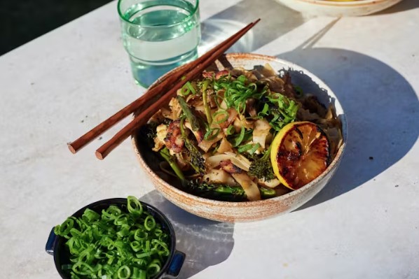 This soy sauce stir-fried noodle dish is perfect for a speedy mid-week meal to cook on your griddle. Whether you choose to swap the chicken for your favourite protein or customise the veggies, the secret lies is caramelising the sauce and noodles to perfection.