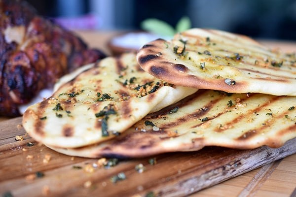 Ensure your grills are clean prior to cooking the naan bread. Cooking the bread on direct medium heat will allow the bread to cook through without burning the bread.